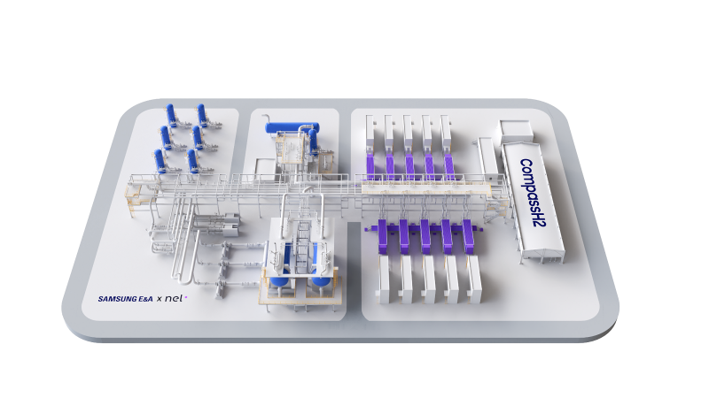 “Compass H2”是由三星电子与全球电解公司Nel Hydrogen合作开发的绿色氢气生产解决方案,提供工厂建设的各个阶段,从可行性研究到EPC(工程、采购和施工)以及性能保证。