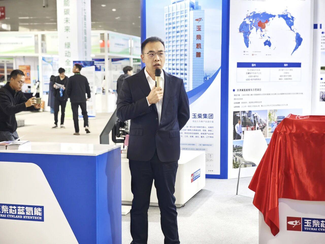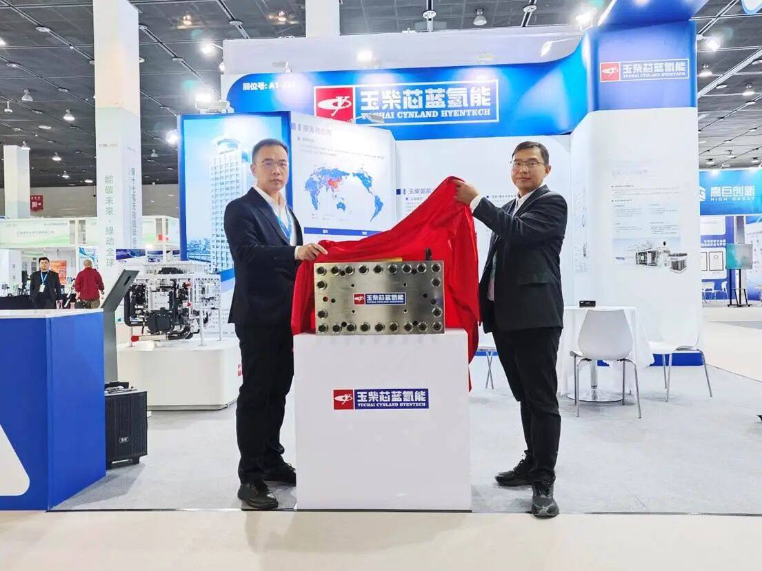 玉柴氢能副总经理王宇先生、玉柴研发总院无锡分院常务副院长钟洪文先生登台为玉柴30kW级PEM电解槽揭幕
