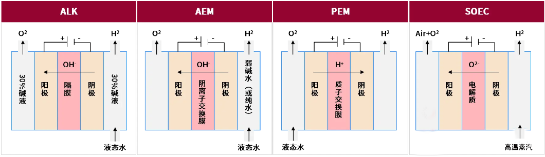 当前主流的电解水制氢技术包括碱性水电解(ALK)、质子交换膜电解(PEM)、高温固体氧化物电解(SOEC)阴离子交换膜电解(AEM)四种此外近两年海水电解制氢也不断获得成果突破