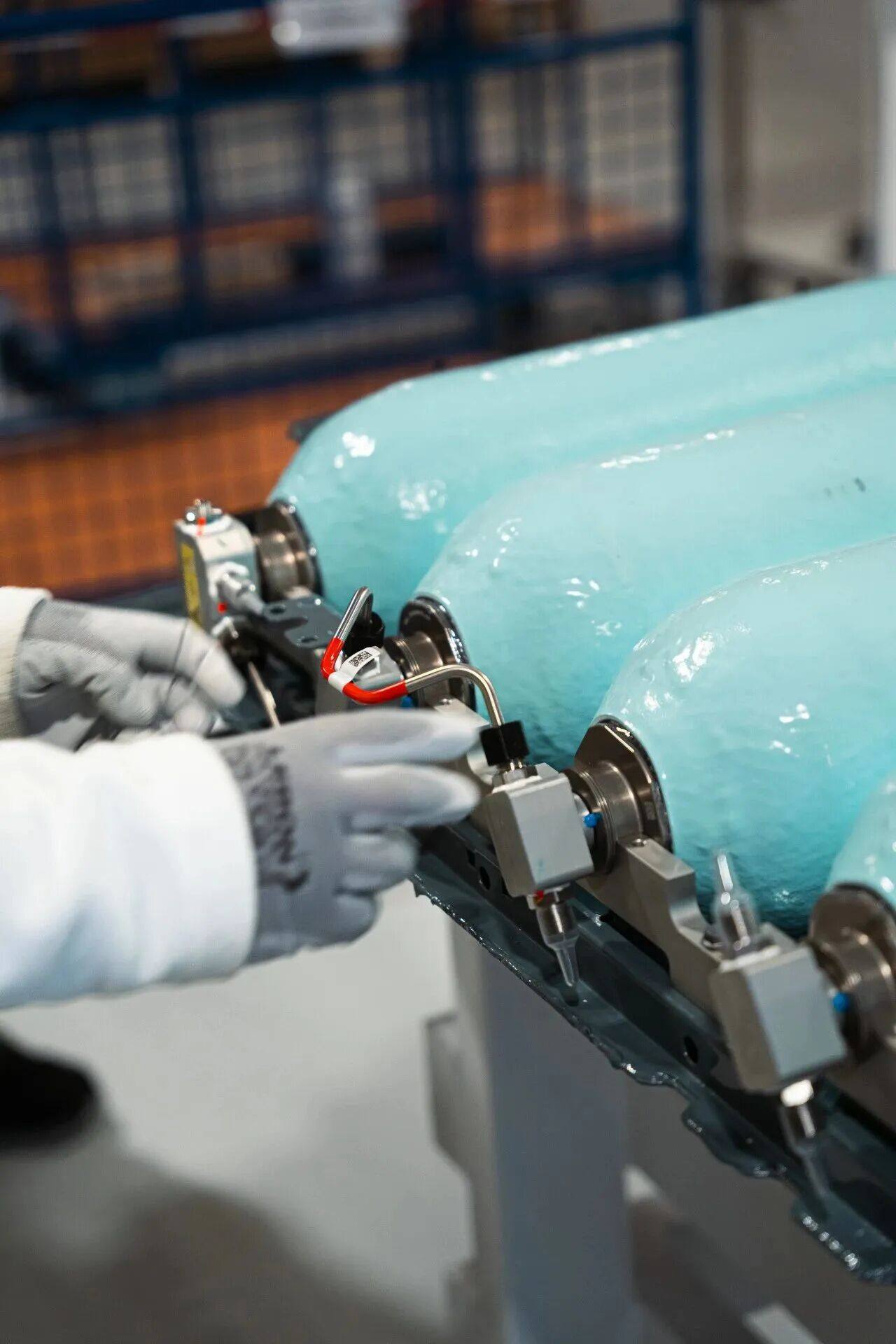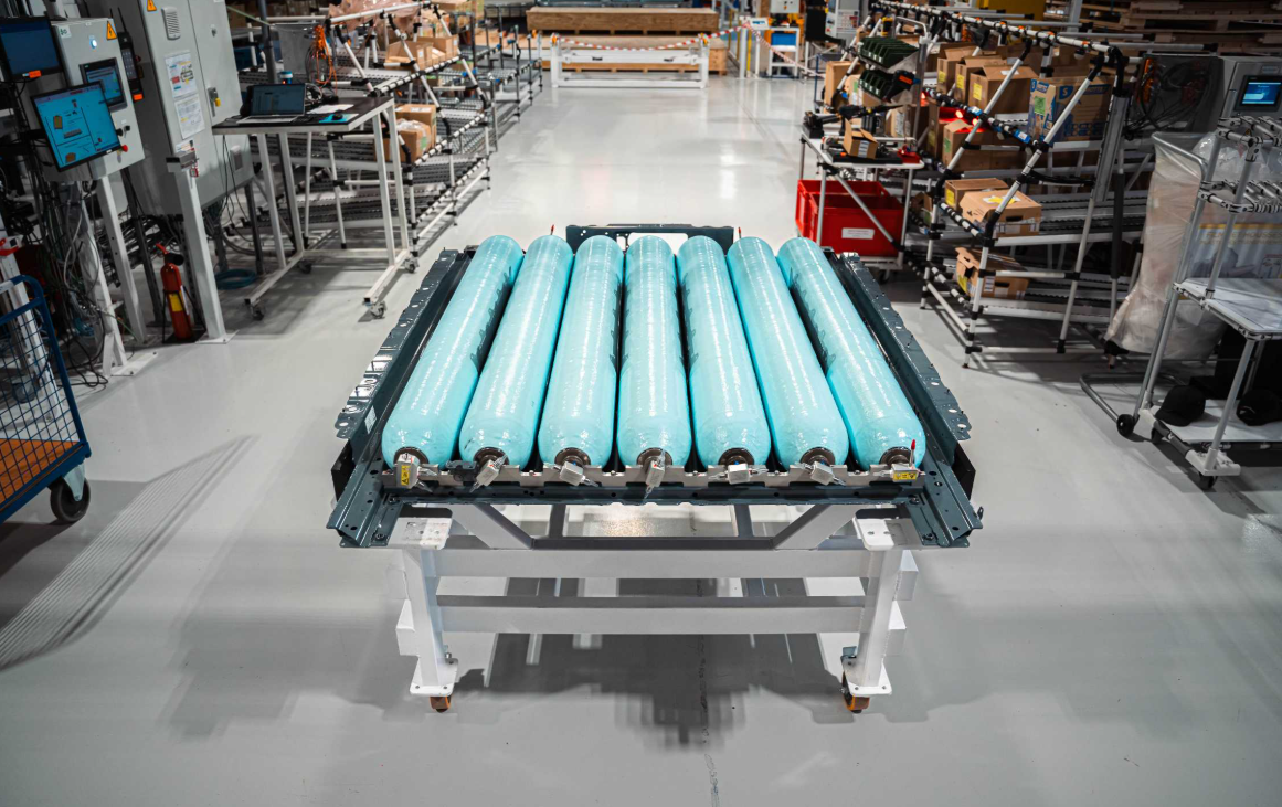 全新的BMW 氢能扁平化储存系统由七个高压碳纤维复合材料储氢罐组成,这些储氢罐以并联方式集成在坚固的金属框架中。其创新技术在于:系统并非采用多个独立压力容器,而是通过相互连通的7个腔体构成一个封闭整体,并由中央主阀统一控制。另外,700巴(bar) 高压储氢罐同时受益于车身结构所提供的机械防护,进一步提升了整体安全性。