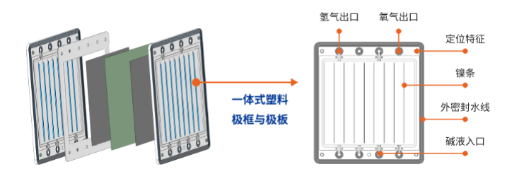 浙江氢舟自主研发的高分子复合非金属极框,通过材料科学与结构设计的颠覆性创新,攻克传统金属极框的固有缺陷,为碱性电解槽提供更轻量化、长寿命、低成本的解决方案。